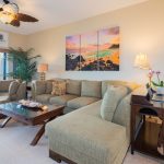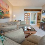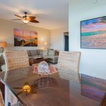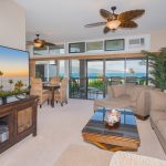 Step inside to discover sensational interiors crafted by one of Maui’s most sought-after interior decorators. Vibrant colors, clean lines, and premium furnishings create an atmosphere of unrivaled comfort and style. The spacious living room, complete with a pull-out sofa and flat screen TV, provides the perfect setting for relaxation or entertaining. Every window in the living room, dining area, and kitchen frames breathtaking ocean vistas.