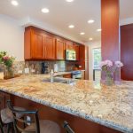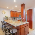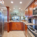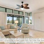 The elegant remodeled kitchen features granite countertops, stainless steel appliances, custom cabinetry and a convenient breakfast bar with ample counter space—perfect for casual dining or entertaining. Both full bathrooms have been tastefully updated with granite countertops, fixtures and cabinetry, while the master bath offers a luxurious walk-in shower. The villa’s first floor boasts tile flooring that extends seamlessly to the lanai, creating an effortless flow between indoor and outdoor living. Additional features include a Murphy bed for added guest accommodations.